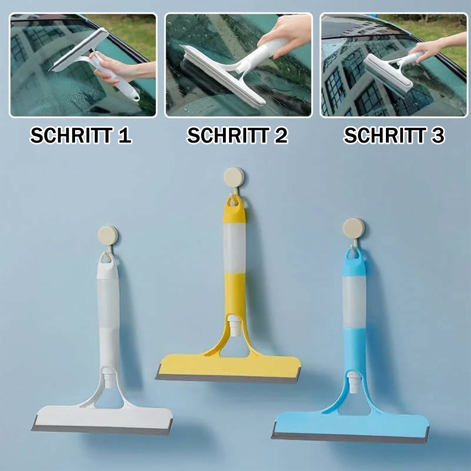Ideal für verschiedene Oberflächen: Dieses Werkzeug eignet sich perfekt für verschiedene Reinigungsaufgaben und ist somit für Auto-, Haus- und Küchenfenster geeignet. Erleben Sie die Vielseitigkeit unseres 3-in-1-Designs, das Schmutz und Ablagerungen auf verschiedenen Oberflächen effektiv beseitigt.