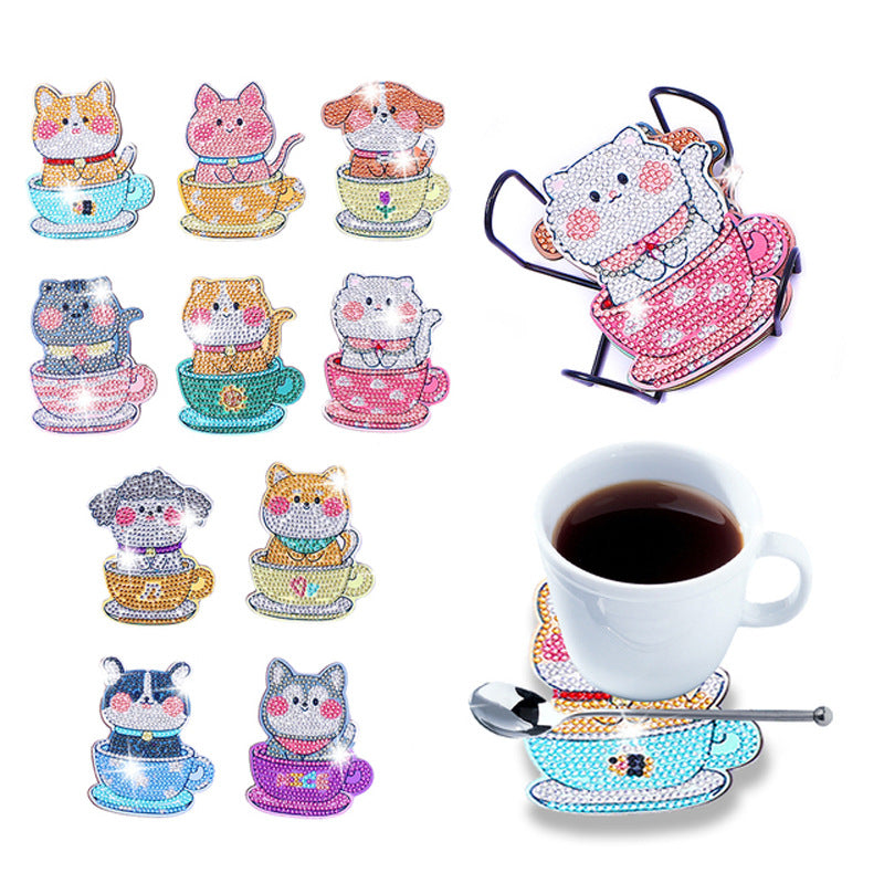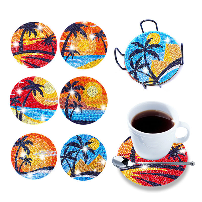6pcs/8pcs/10pcs 5D DIY Diamond Painting Coaster Cup Cushion Insulation Pad Table Placemat Handmade Art Home Decor
