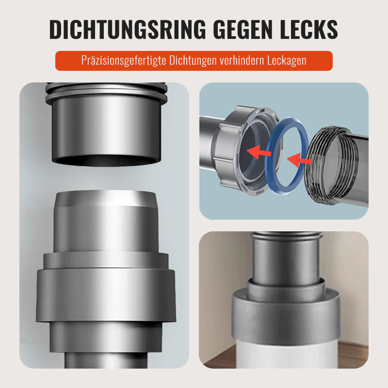 PLATZSPARENDES DESIGN – Das kompakte Layout des Siphon-Sets maximiert den Stauraum unter Ihrer Spüle. Ideal für kleine Küchenschränke, schafft zusätzlichen Platz für Vorräte oder Reinigungsutensilien.