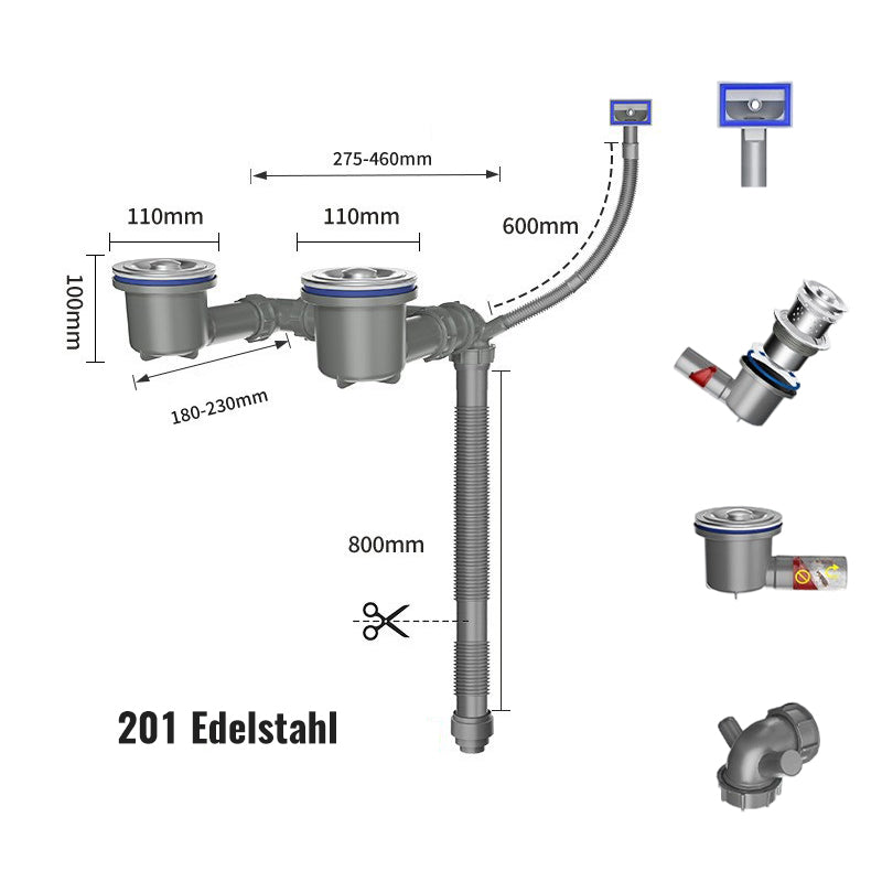 Lieferumfang: 1 × Doppelspülen-Siphon-Set