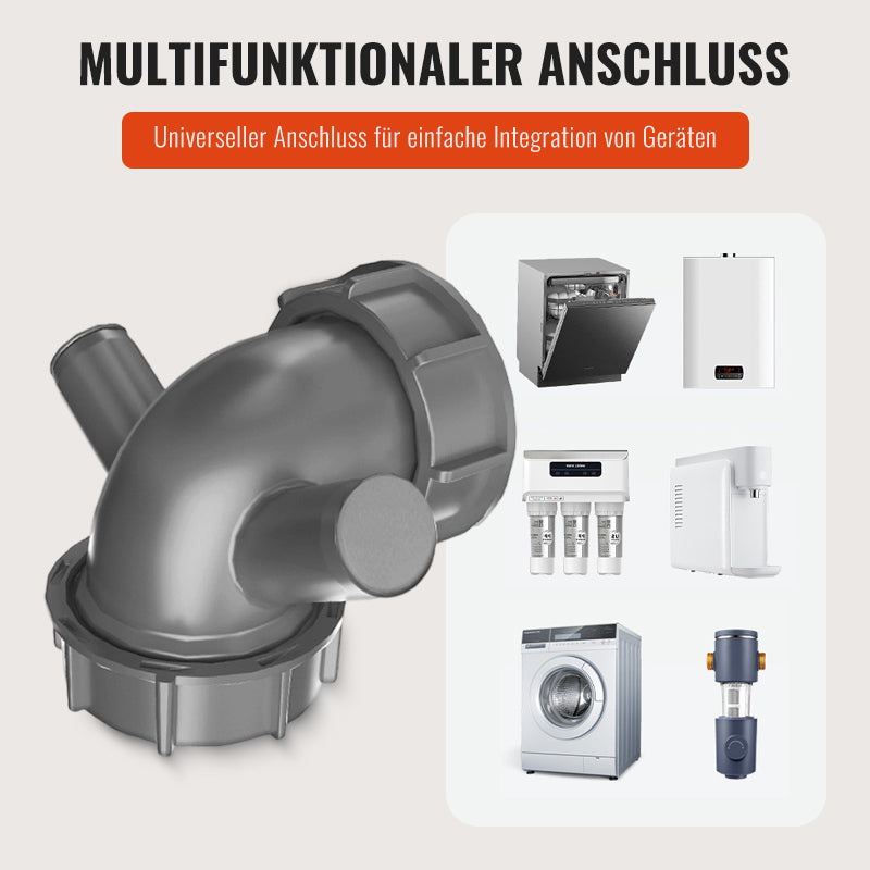 MULTIFUNKTIONALER ANSCHLUSS – Universalanschluss für Spülmaschine oder Waschmaschine, einfache Integration in die bestehende Kücheninstallation für effiziente und vielseitige Entwässerung.