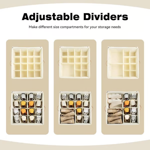 LEICHT ZU BEWEGEN: Mit zwei verstärkten, genieteten Griffen, die robuster sind als herkömmliche, genähte, kann die Sandalen-/Flip-Flop-Organizerbox auch schwerere Lasten tragen und mühelos bewegt werden. Ob Sie Ihre Gegenstände schieben, ziehen oder tragen, das Gepäckgurt-Design auf der Rückseite des Schuhkorbs bietet ultimative Tragbarkeit für Reisen oder Umzüge.