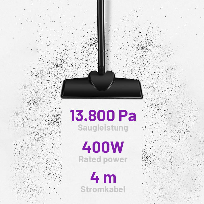 4M LANGES STROMKABEL FÜR UNGEHINDERTE BEWEGUNGSFREIHEIT – Mit einem großzügigen 4-Meter-Stromkabel (ca. 13 Fuß) bietet dieser Staubsauger außergewöhnliche Mobilität und Flexibilität bei der Verwendung. Die erweiterte Kabellänge ermöglicht es Ihnen, sich frei im Raum zu bewegen, ohne ständig die Steckdose wechseln zu müssen, wodurch der Reinigungsprozess effizienter und weniger umständlich wird.