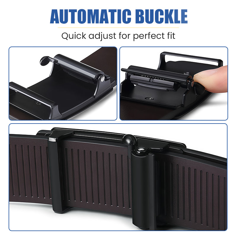 AUTOMATISCHE SCHLIESSUNG - Das automatische Schnallensystem ermöglicht eine schnelle Einstellung für einen sicheren Sitz. Es sorgt für reibungsloses Schließen und Lösen mit einer Hand. Diese Funktion spart Zeit und bietet gleichzeitig eine präzise Größenanpassung, die Ihnen bei jedem Outfit Sicherheit gibt.