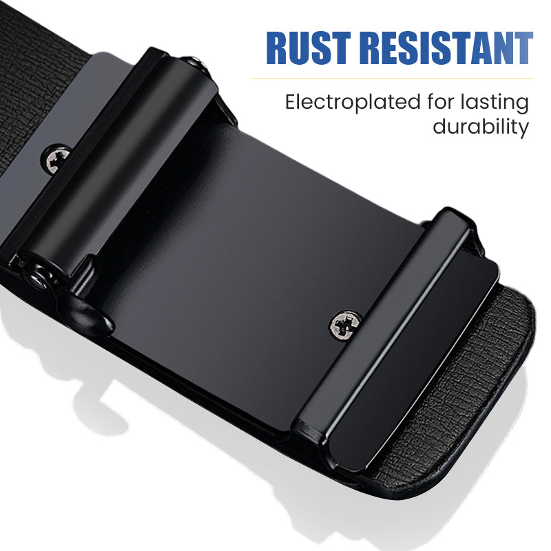RUST RESISTANT - Die galvanische Beschichtung schützt die Schnalle vor Rost und Korrosion und sorgt für Langlebigkeit im täglichen Gebrauch. Selbst bei Feuchtigkeit oder häufigem Tragen behält der Gürtel sein poliertes Aussehen.