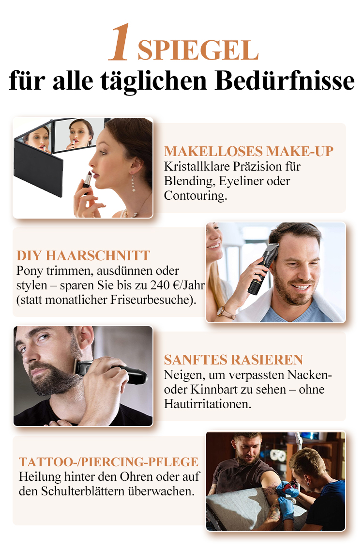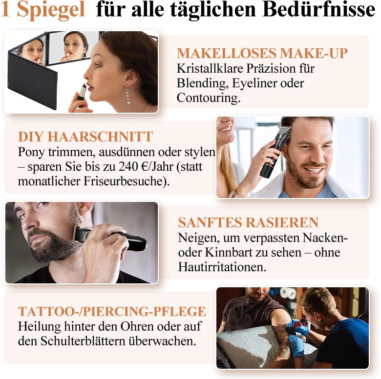 💥360° klappbarer Spiegel zum Selbstschneiden und Schminken – Rückansicht verfügbar