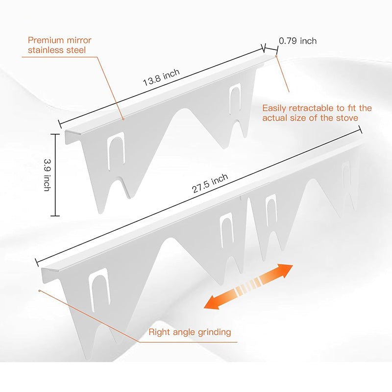 EINFACH RETRACTABLE LÄNGE:Das flexible, verstellbare Design passt sich an unterschiedlich große Lücken an und gewährleistet eine perfekte Passform für die meisten Herde und Arbeitsplatten. Ziehen Sie die Abdeckungen einfach ein oder fahren Sie sie aus, um sie an Ihre Bedürfnisse anzupassen.