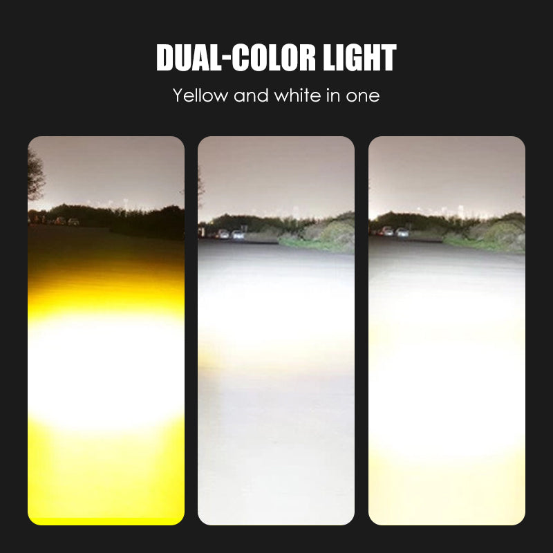 ZWEIFARBIG MIT INTEGRIERTEM BLITZMODUS: Wechseln Sie zwischen gelbem Abblendlicht und weißem Fernlicht. Inklusive integrierter Stroboskopfunktion für mehr Sicherheit und Sichtbarkeit in Not- oder Offroad-Situationen.